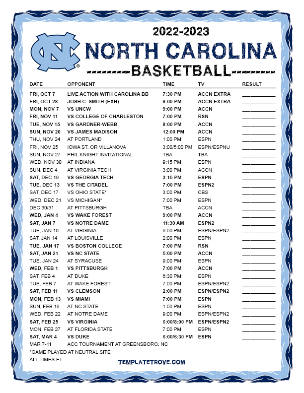 Keep up with the North Carolina Tarheels basketball in the 2022-23 season with our
