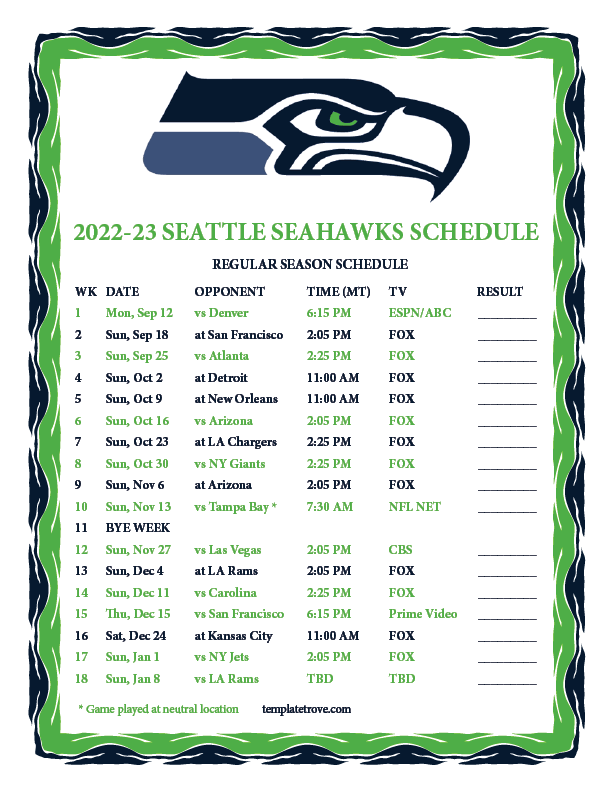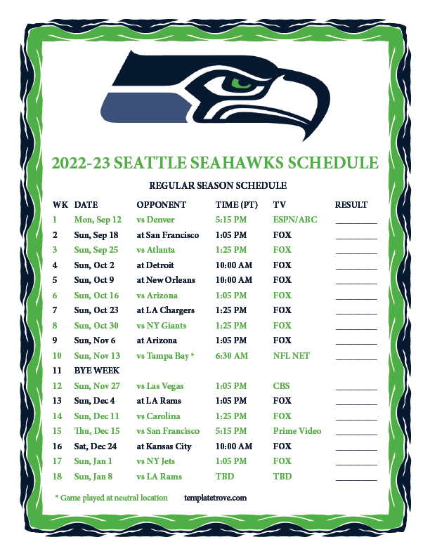 Keep up with the Seattle Seahawks 2022-23 season with our free