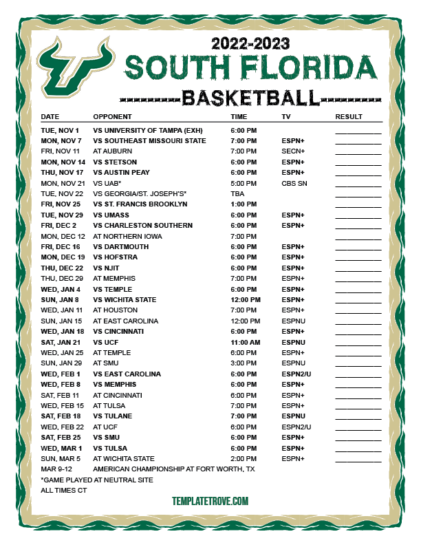 Keep up with the South Florida Bulls basketball in the 2022-23 season with our