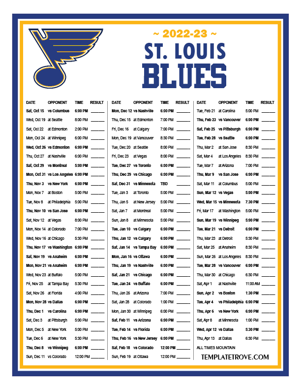 Keep up with the St. Louis Blues in the 2022-23 season with our