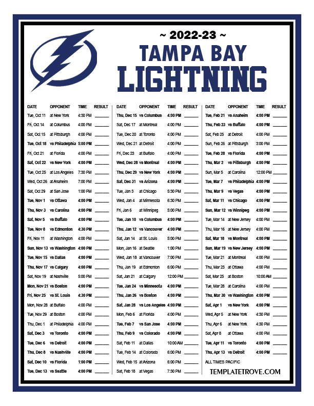 Keep up with the Tampa Bay Lightning in the 2022-23 season with our