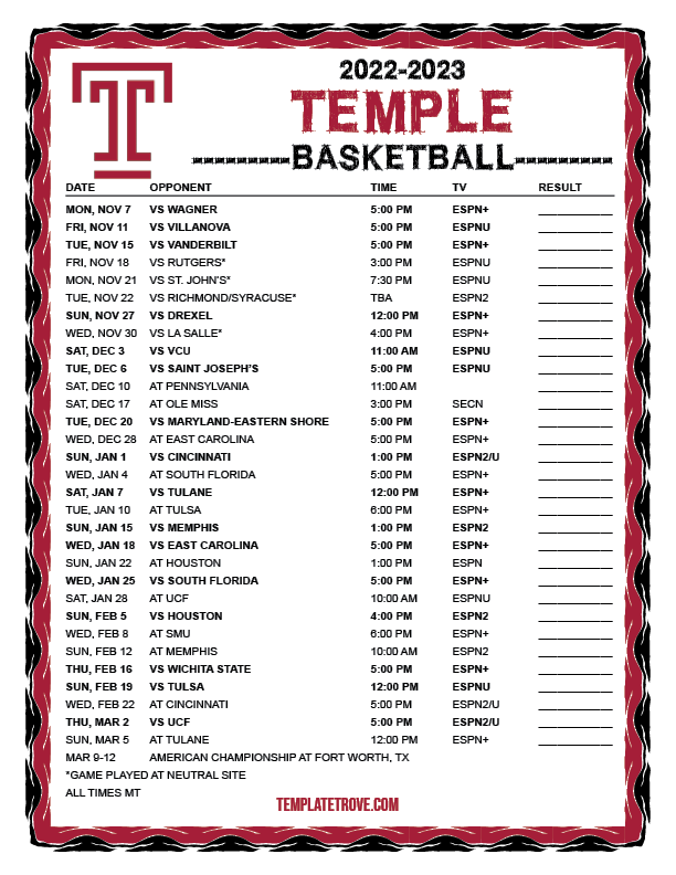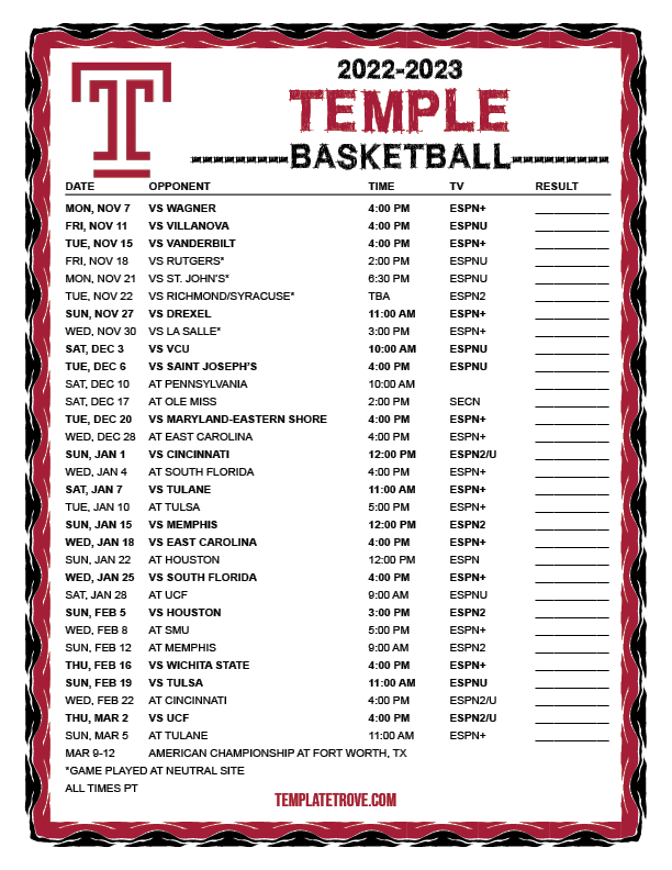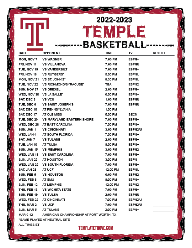Keep up with the Temple Owls basketball in the 2022-23 season with our