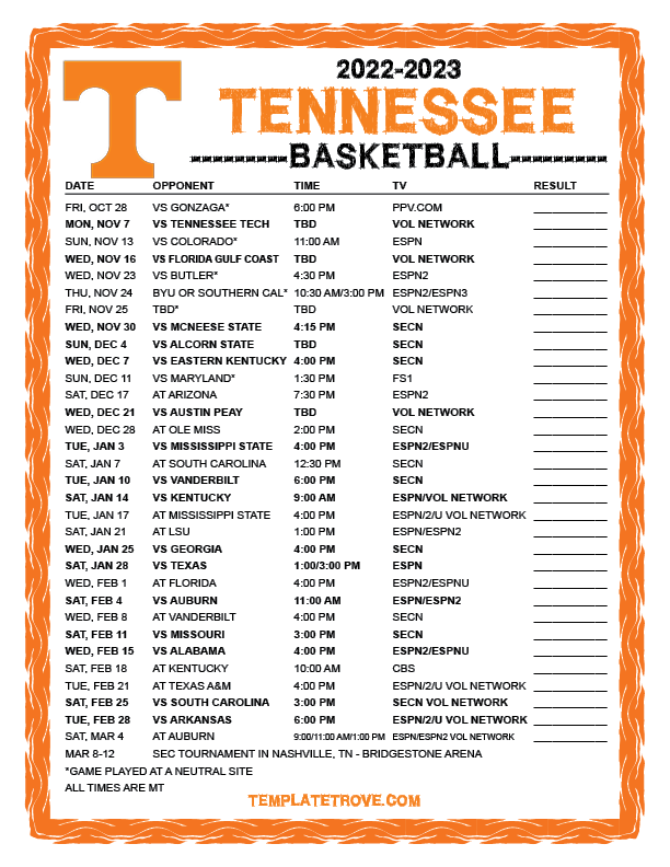 Keep up with the Tennessee Volunteers basketball in the 2022-23 season with our