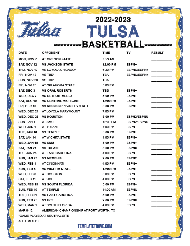 Keep up with the Tulsa Golden Hurricane basketball in the 2022-23 season with our