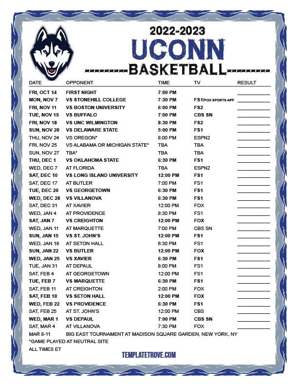 Keep up with the UConn Huskies basketball in the 2022-23 season with our