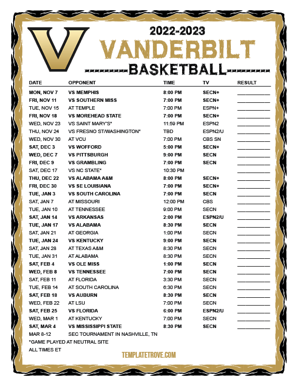 Keep up with the Vanderbilt Commodores basketball in the 2022-23 season with our