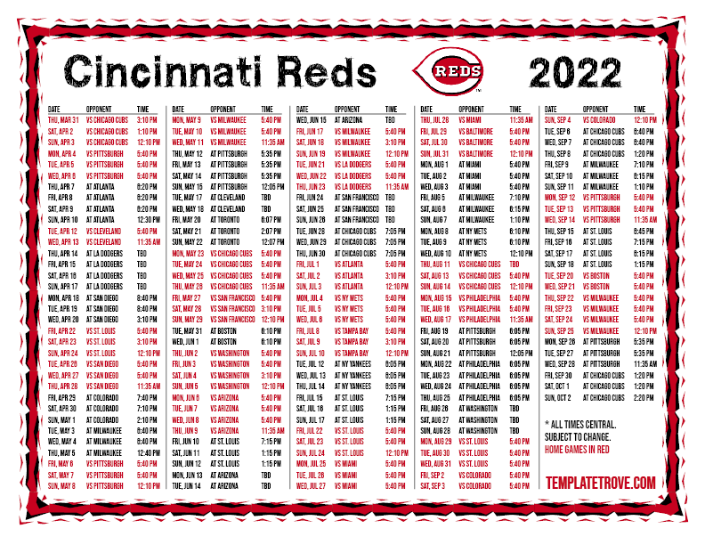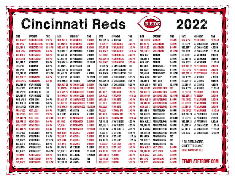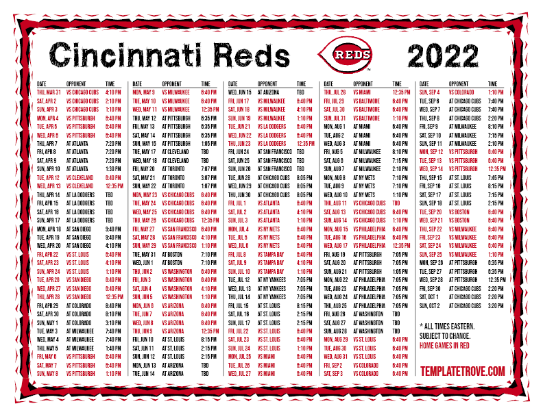 Keep up with the 2022 Cincinnati Reds with our handy printable schedules, now available for each US time zone.