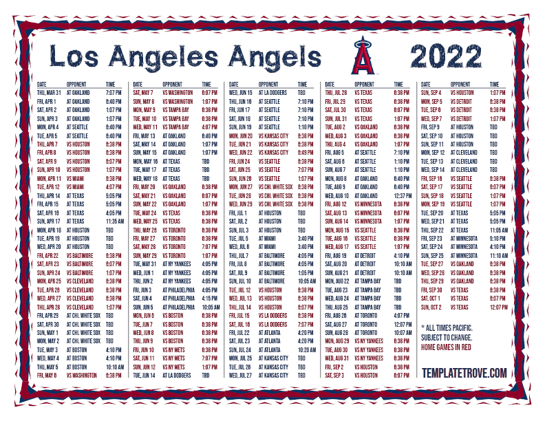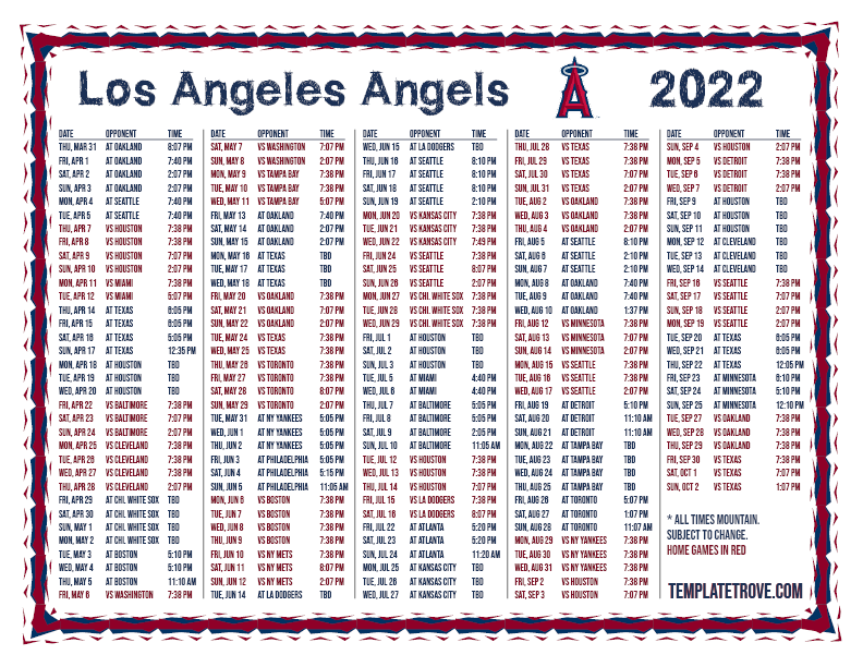 Keep up with the 2022 Los Angeles Angels with our handy printable schedules, now available for each US time zone.