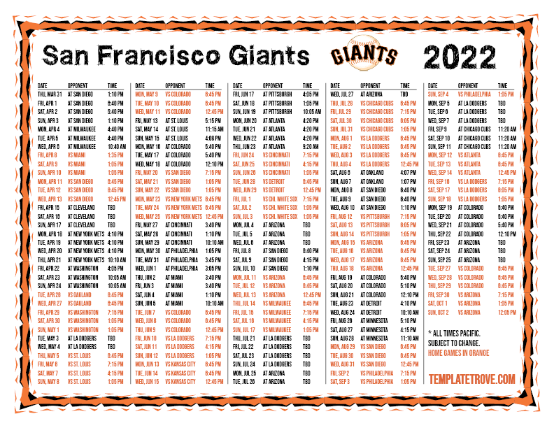 Keep up with the 2022 San Francisco Giants with our handy printable schedules, now available for each US time zone.