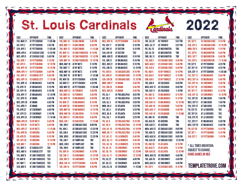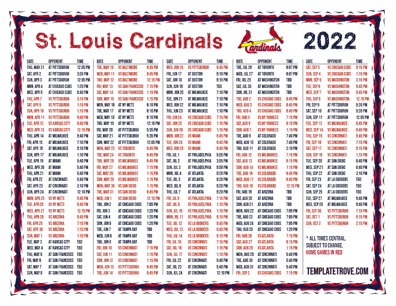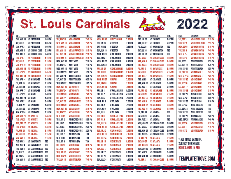 Keep up with the 2022 St. Louis Cardinals with our handy printable schedules, now available for each US time zone.