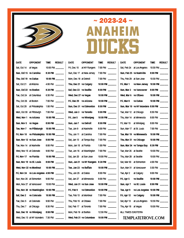 Keep up with the Anaheim Ducks in the 2023-24 season with our