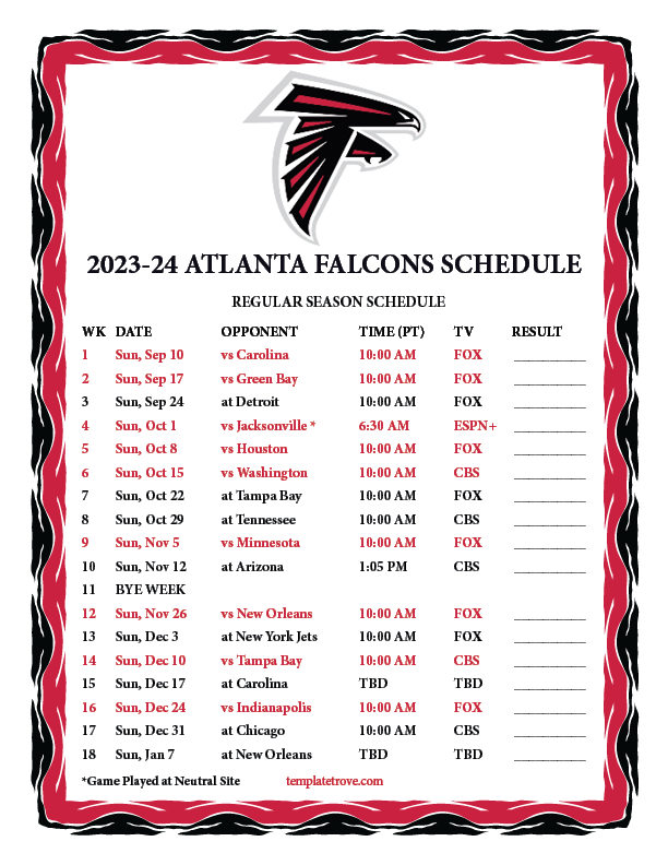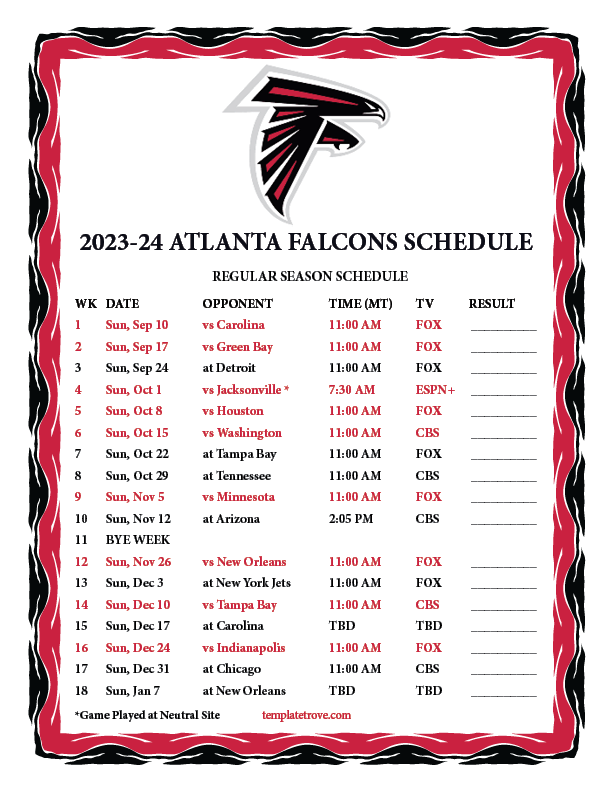 Keep up with the Atlanta Falcons in the 2023-24 season with our