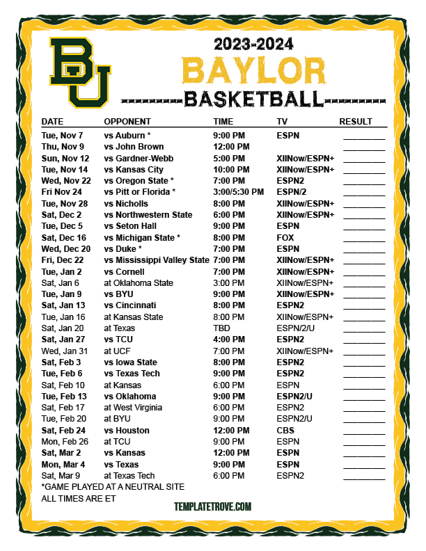 Keep up with the Baylor Bears basketball in the 2023-24 season with our
