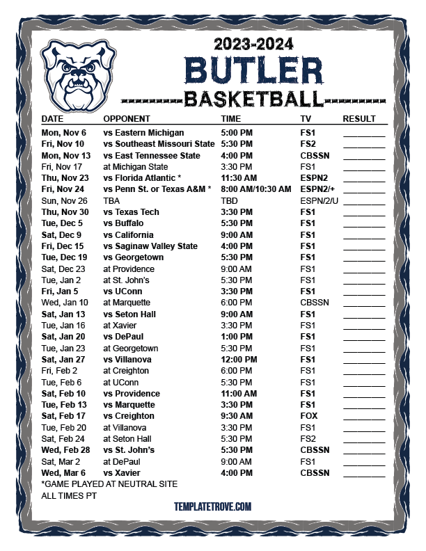 Keep up with the Butler Bulldogs basketball in the 2023-24 season with our