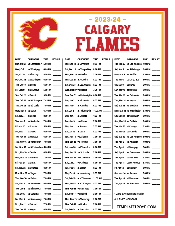 Keep up with the Calgary Flames in the 2023-24 season with our