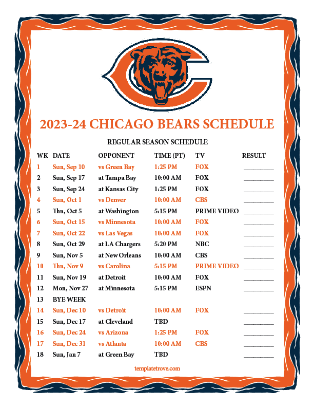 Keep up with the Chicago Bears in the 2023-24 season with our