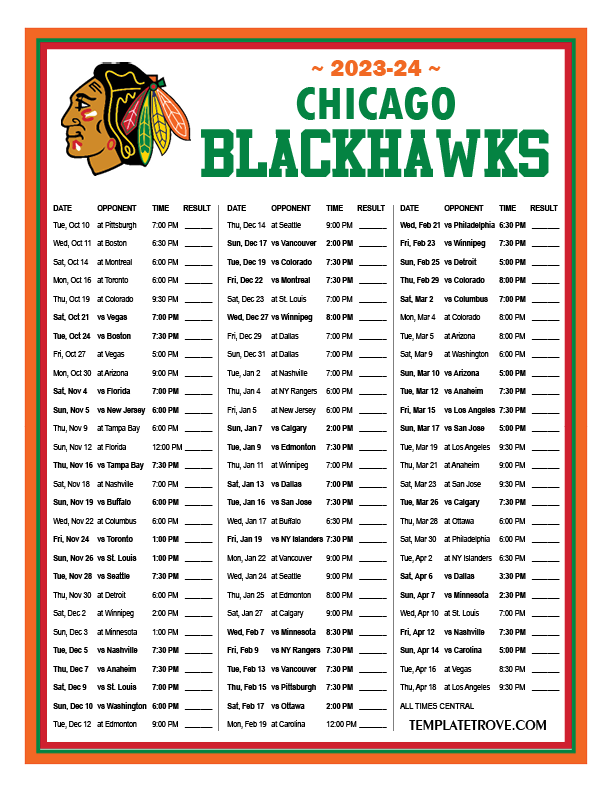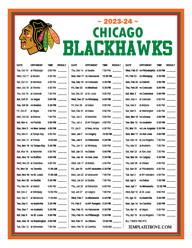 Keep up with the Chicago Blackhawks in the 2023-24 season with our