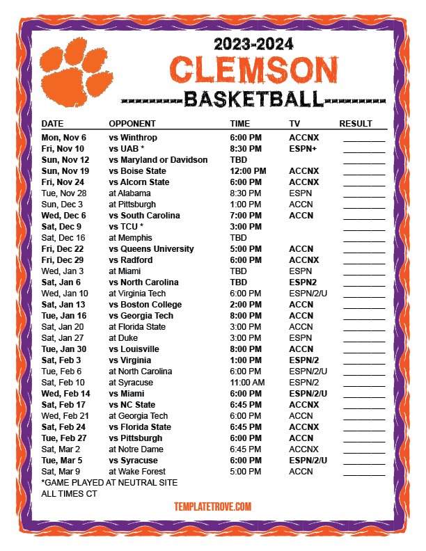 Keep up with the Clemson Tigers basketball in the 2023-24 season with our
