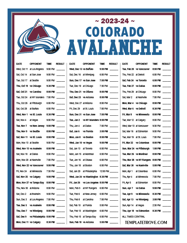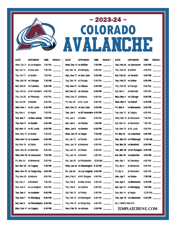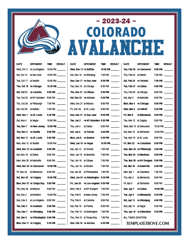 Keep up with the Colorado Avalanche in the 2023-24 season with our