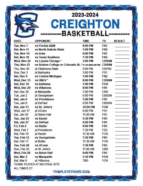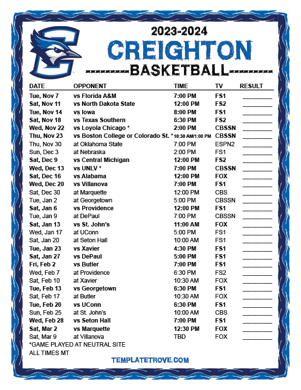 Keep up with the Creighton Bluejays basketball in the 2023-24 season with our