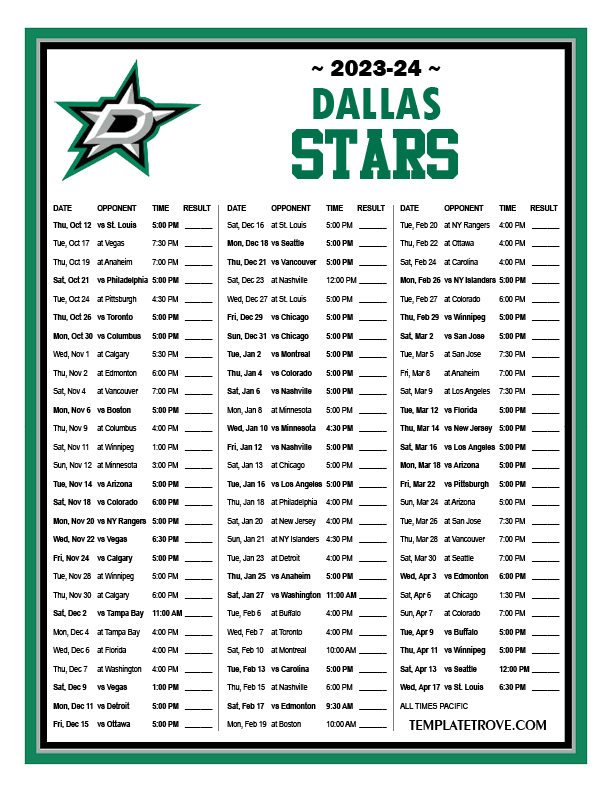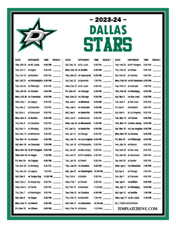 Keep up with the Dallas Stars in the 2023-24 season with our