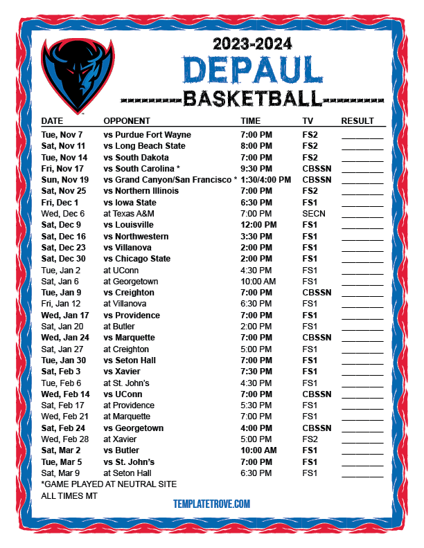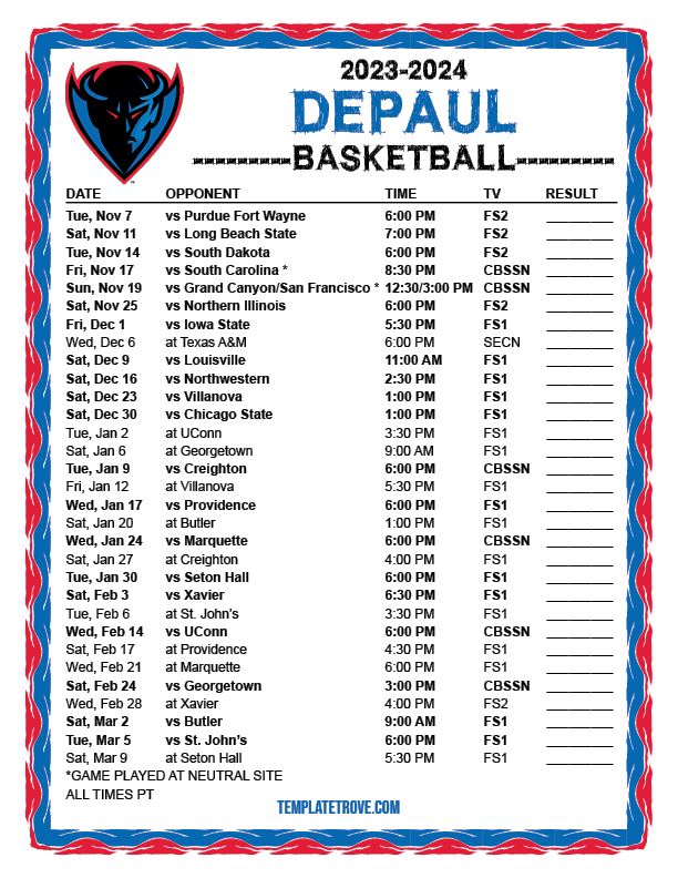 Keep up with the DePaul Blue Demons basketball in the 2023-24 season with our