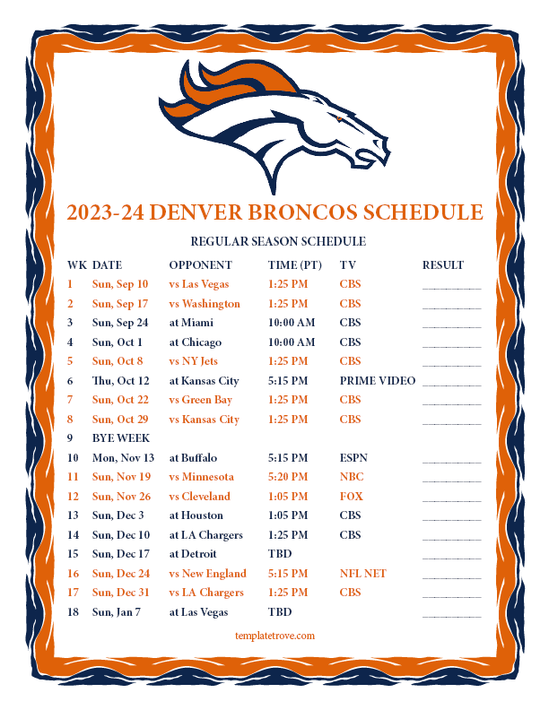 Keep up with the Denver Broncos in the 2023-24 season with our
