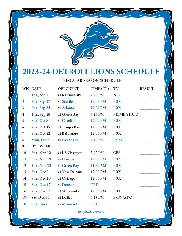 Keep up with the Detroit Lions in the 2023-24 season with our