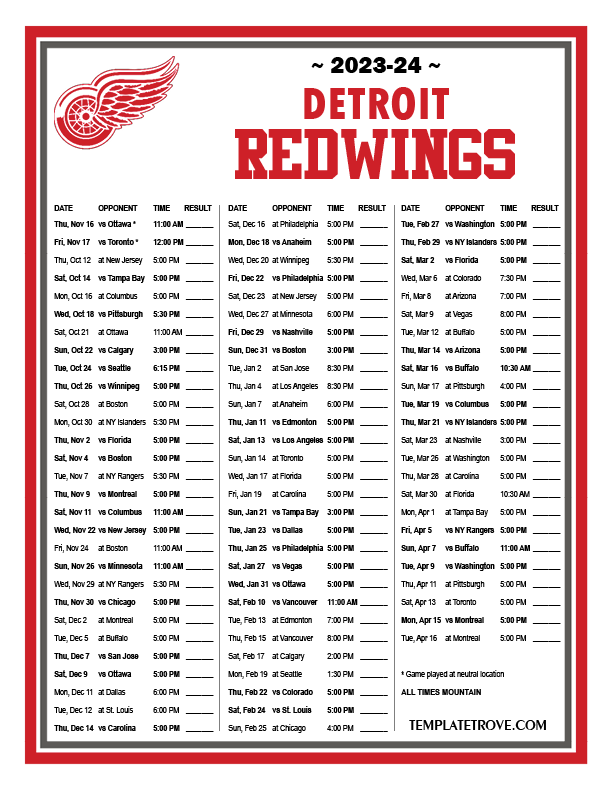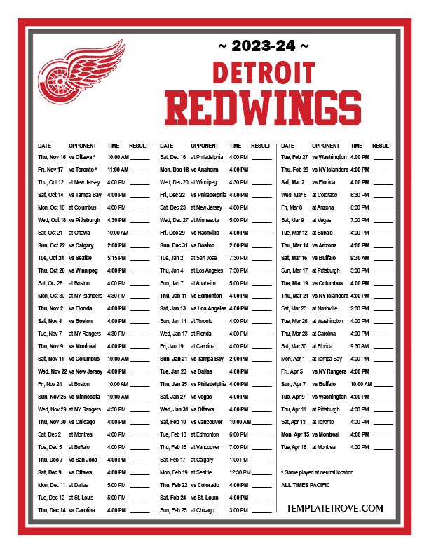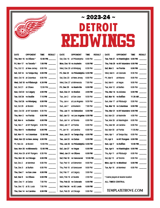 Keep up with the Detroit Red Wings in the 2023-24 season with our