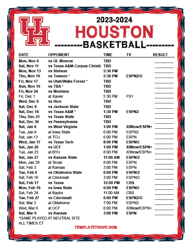 Keep up with the Houston Cougars basketball in the 2023-24 season with our