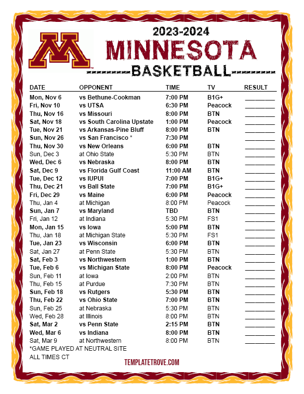 Keep up with the Minnesota Golden Gophers basketball in the 2023-24 season with our