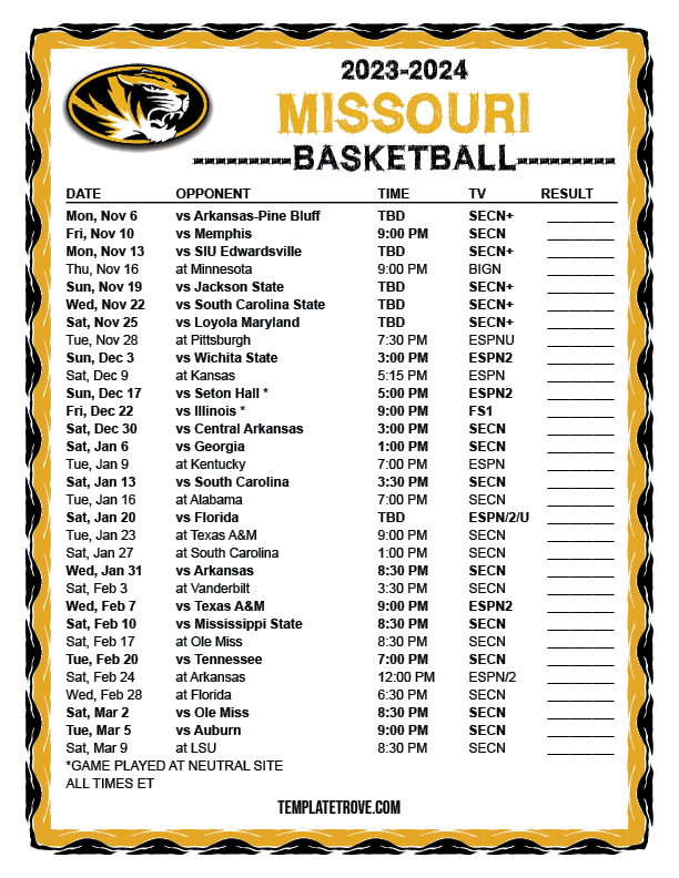 Keep up with the Missouri Tigers basketball in the 2023-24 season with our