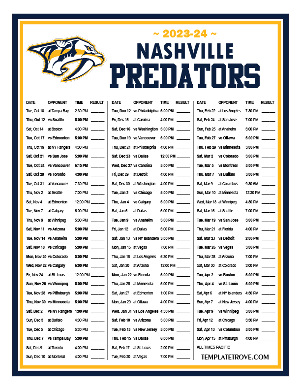 Keep up with the Nashville Predators in the 2023-24 season with our
