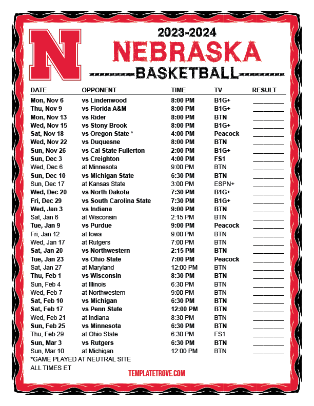 Keep up with the Nebraska Cornhuskers basketball in the 2023-24 season with our