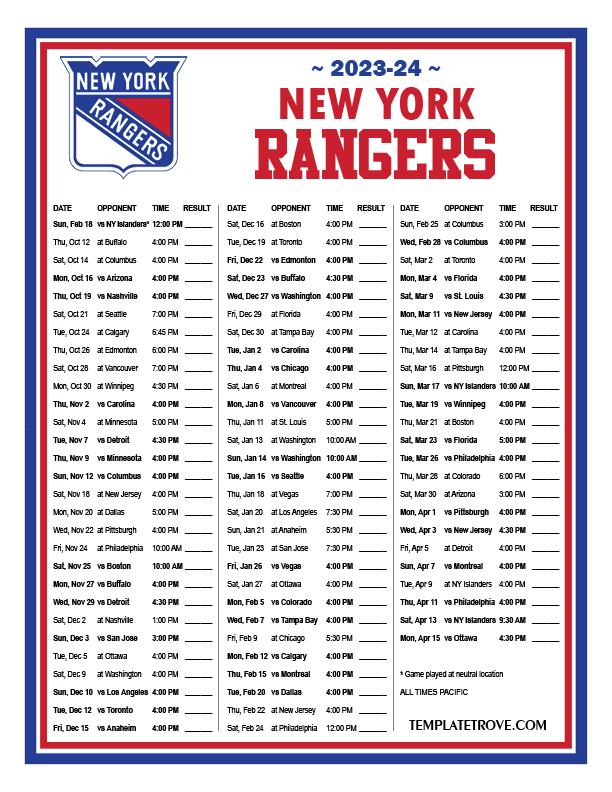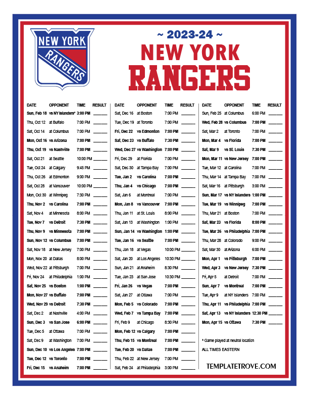 Keep up with the New York Rangers in the 2023-24 season with our