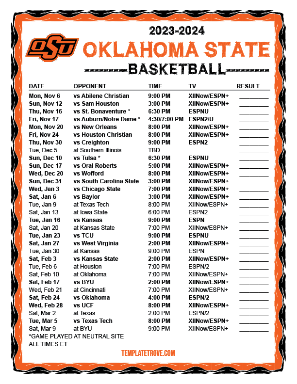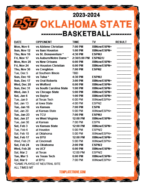 Keep up with the Oklahoma State Cowboys basketball in the 2023-24 season with our