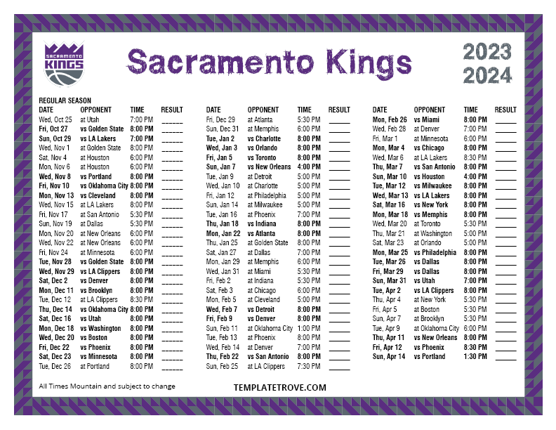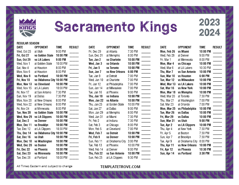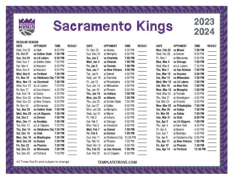 Keep up with the Sacramento Kings in the 2023-24 season with our
