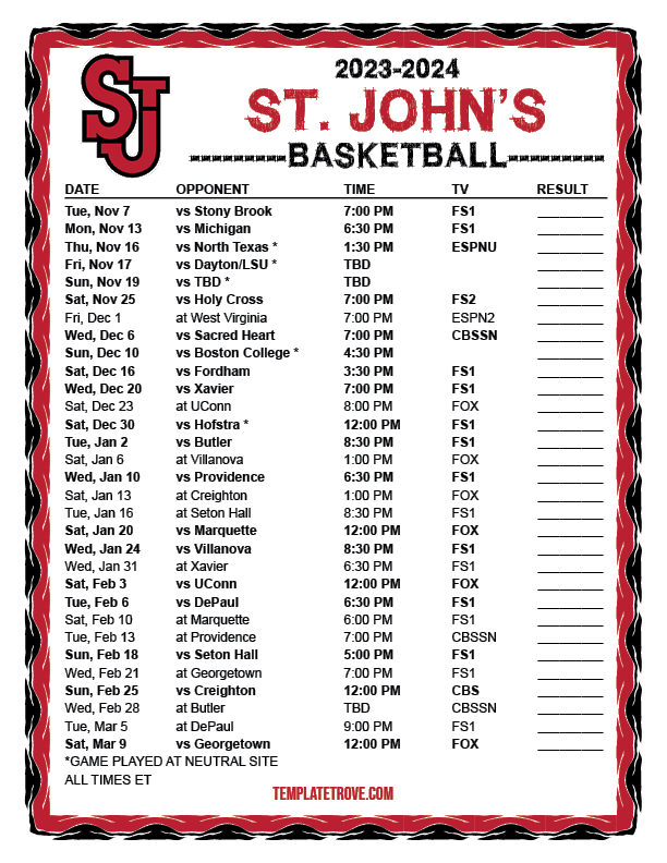 Keep up with the St. John's Red Storm basketball in the 2023-24 season with our