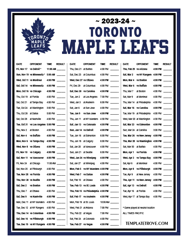 Keep up with the Toronto Maple Leafs in the 2023-24 season with our
