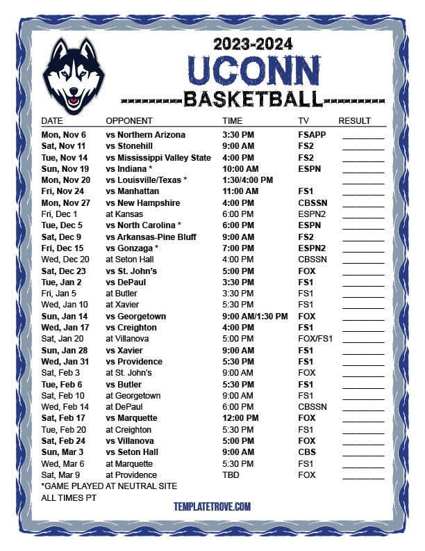 Keep up with the UConn Huskies basketball in the 2023-24 season with our