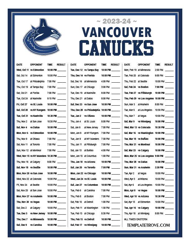 Keep up with the Vancouver Canucks in the 2023-24 season with our