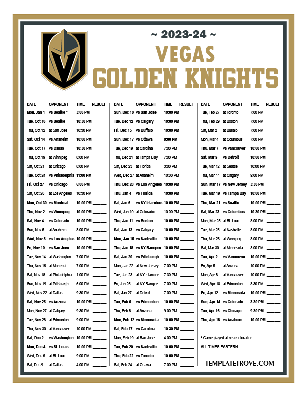 Keep up with the Vegas Golden Knights in the 2023-24 season with our
