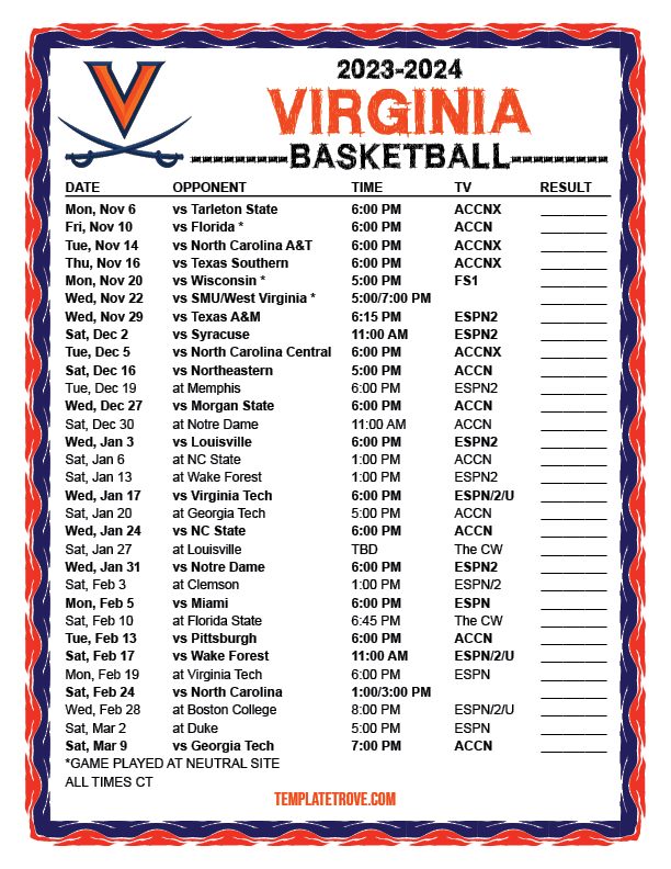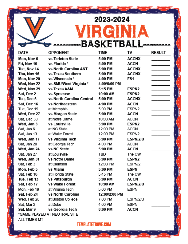 Keep up with the Virginia Cavaliers basketball in the 2023-24 season with our