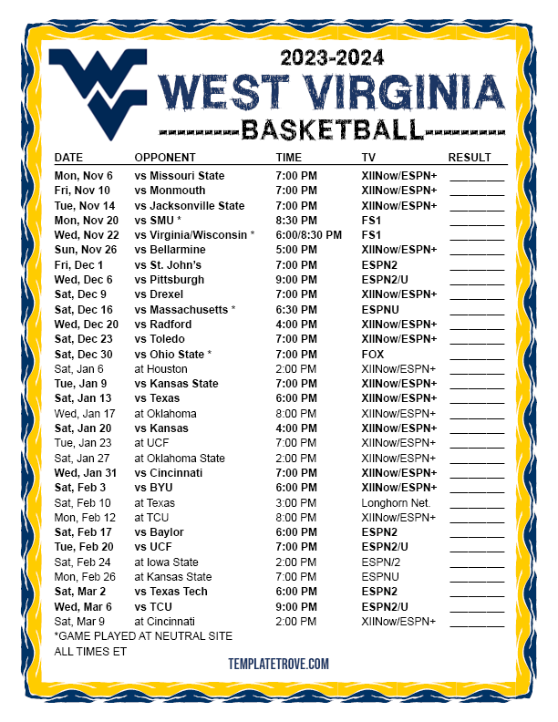 Keep up with the West Virginia Mountaineers basketball in the 2023-24 season with our