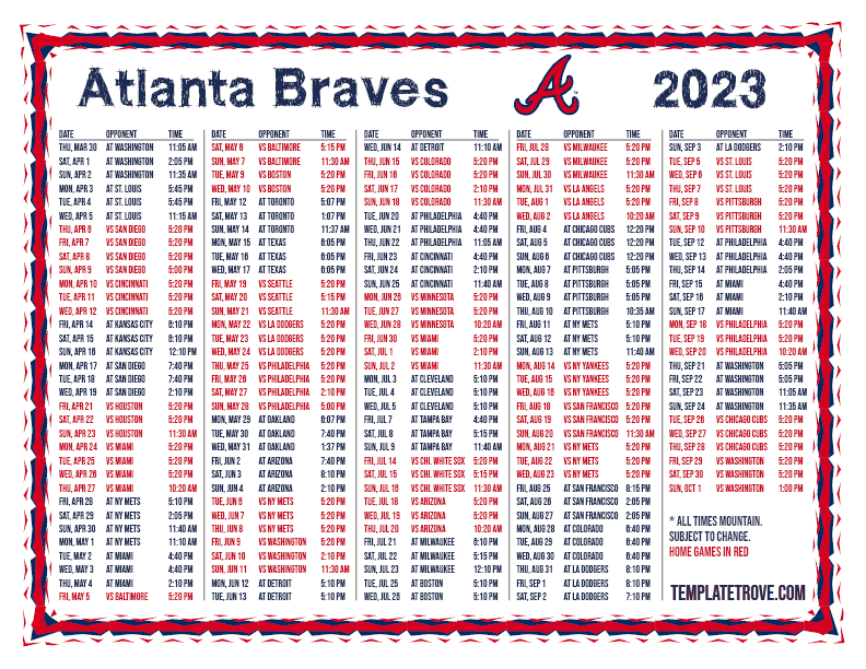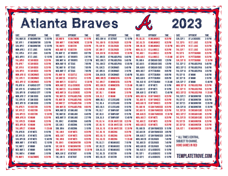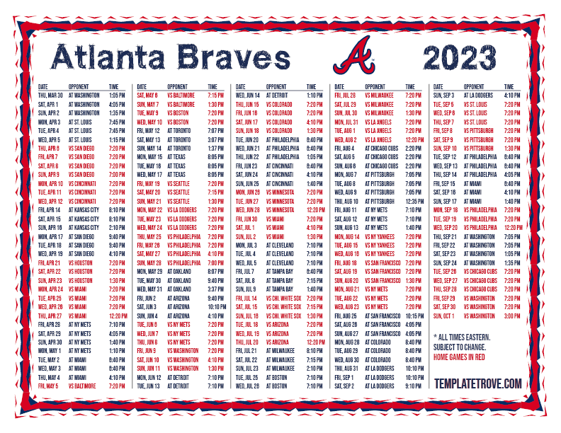 Keep up with the 2023 Atlanta Braves with our handy printable schedules, now available for each US time zone.