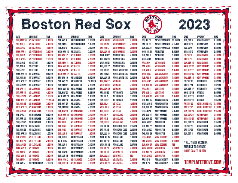 Keep up with the 2023 Boston Red Sox with our handy printable schedules, now available for each US time zone.