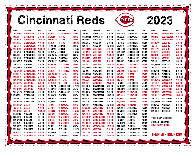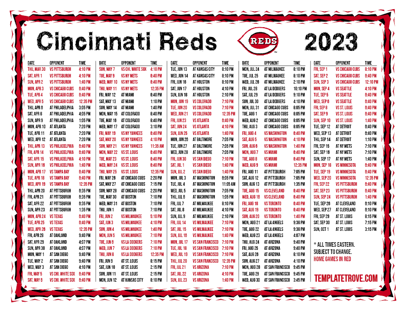Keep up with the 2023 Cincinnati Reds with our handy printable schedules, now available for each US time zone.