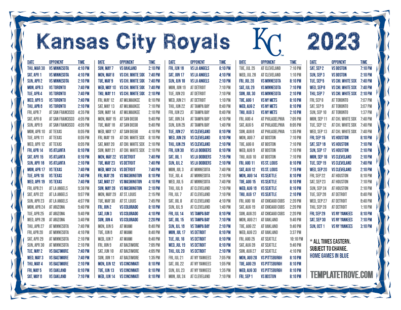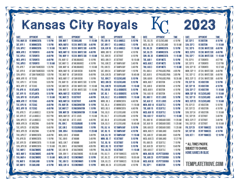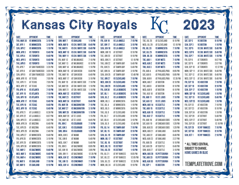 Keep up with the 2023 Kansas City Royals with our handy printable schedules, now available for each US time zone.