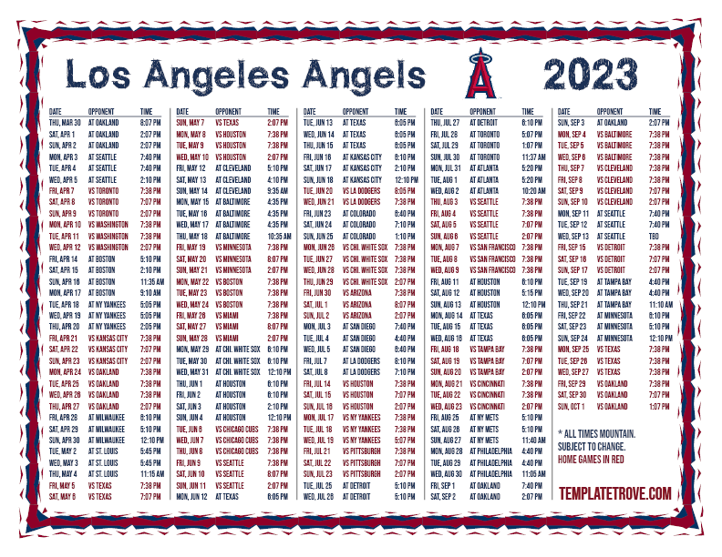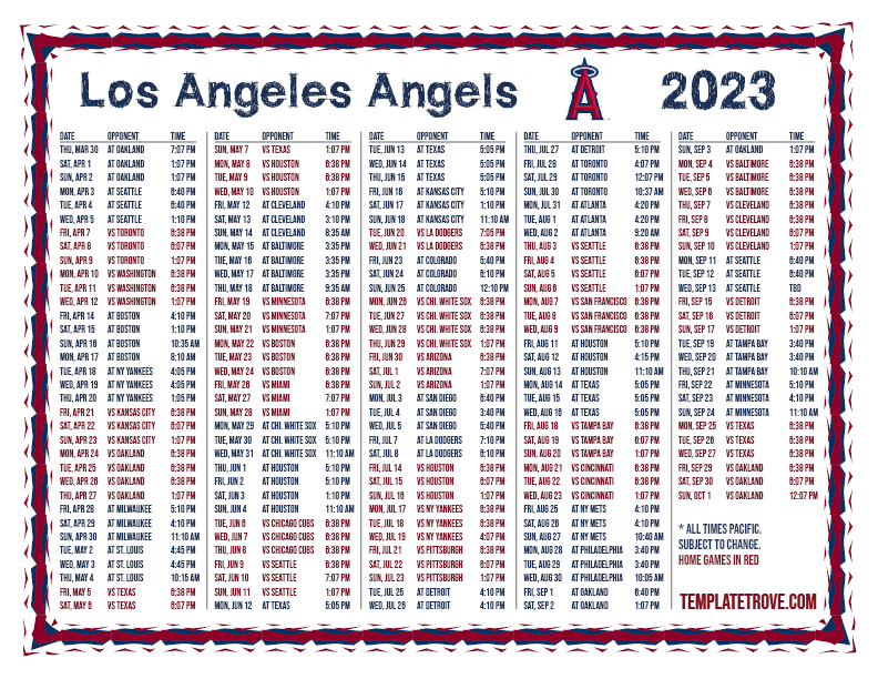 Keep up with the 2023 Los Angeles Angels with our handy printable schedules, now available for each US time zone.