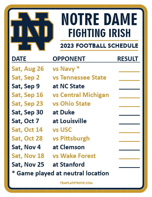 Keep up with Notre Dame Fighting Irish Football in the 2023 season with our